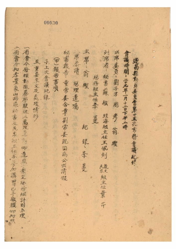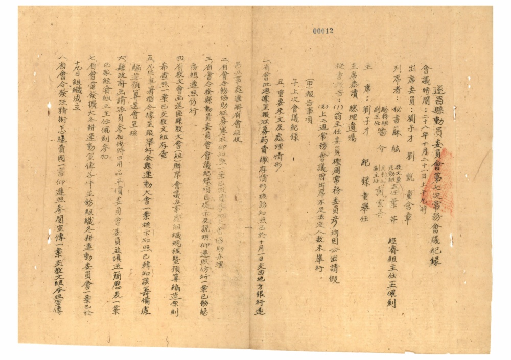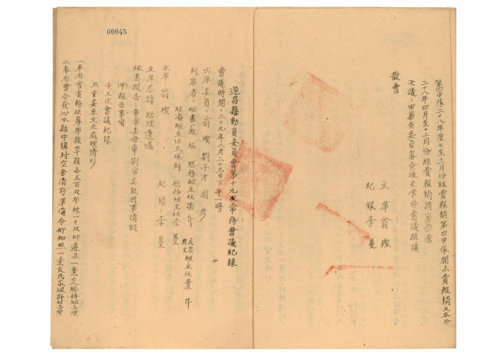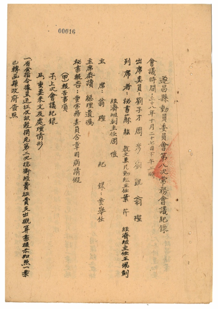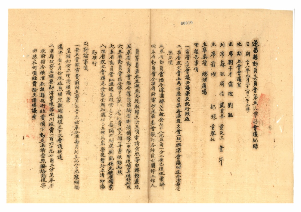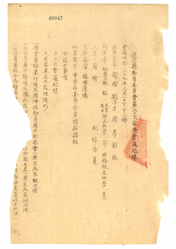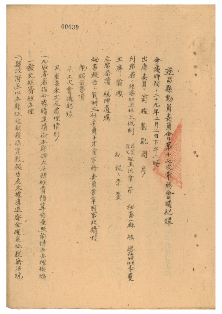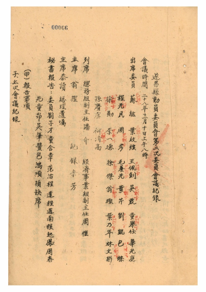 遂昌縣動員委員㑹第二次常務㑹議紀録