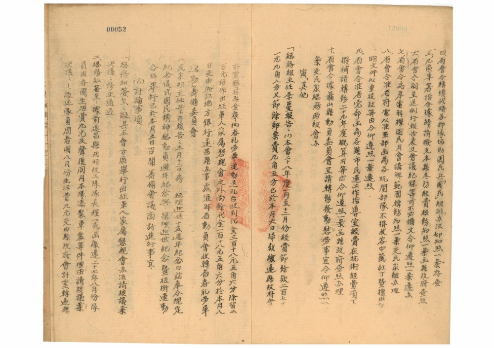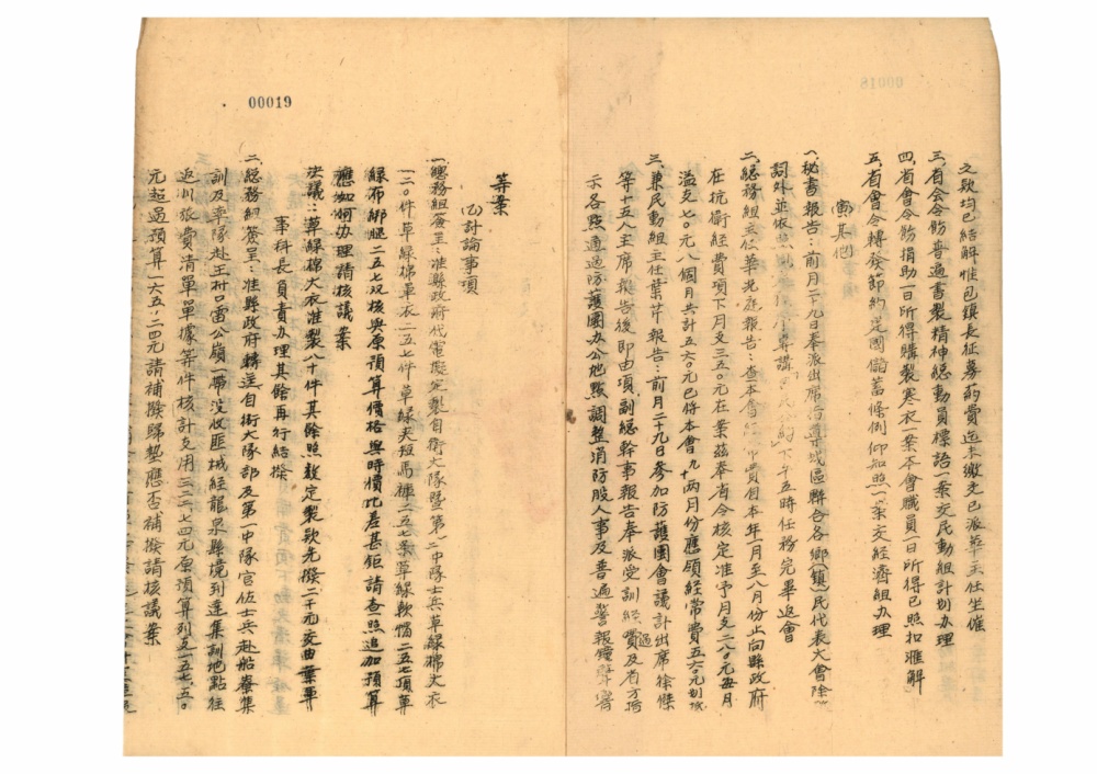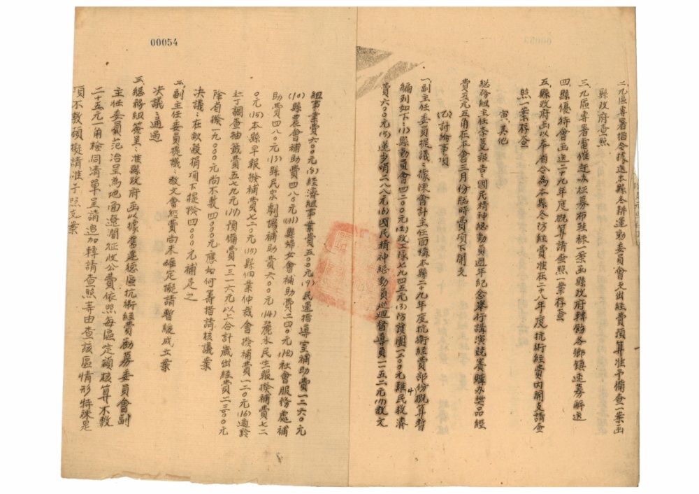 編列下:⑴縣動員㑹四二〇元㈤政工隊七九四元⑶防䕶團一二〇難民