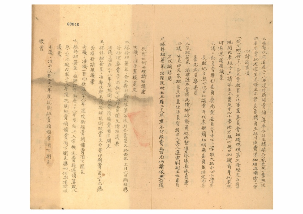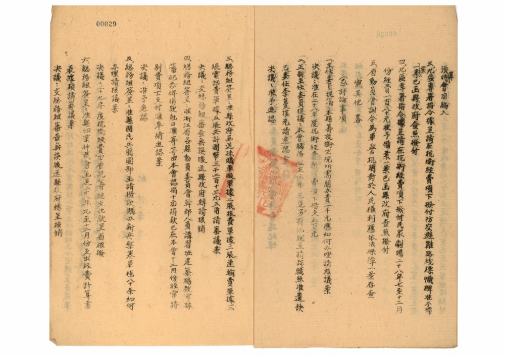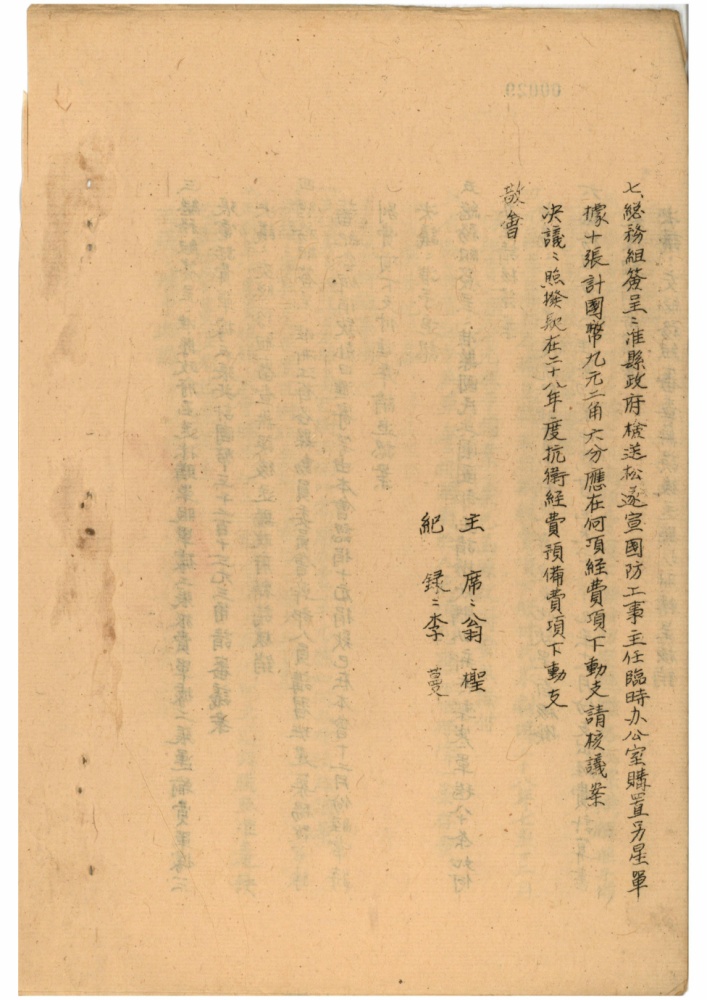 一,副主任委員提議:據陳㑹計主任面贛本縣二十九年度抗衛𦀇費部份概算暫