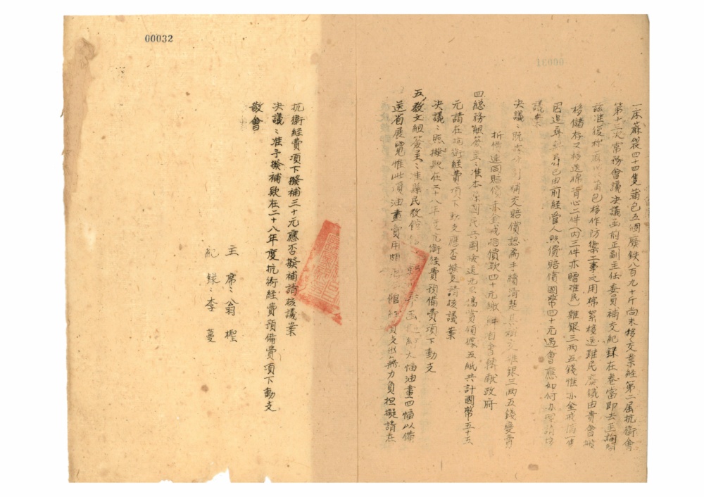 办費及四月至大月份𦀇費報銷又抗敵自衞預備隊第一中隊二十八年度八月至十