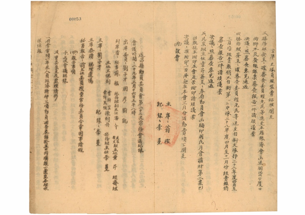 一,縂務組主任李蔓報告:⑴本㑹二十八年度一月至十二月份𦀇費節餘欵二百七小