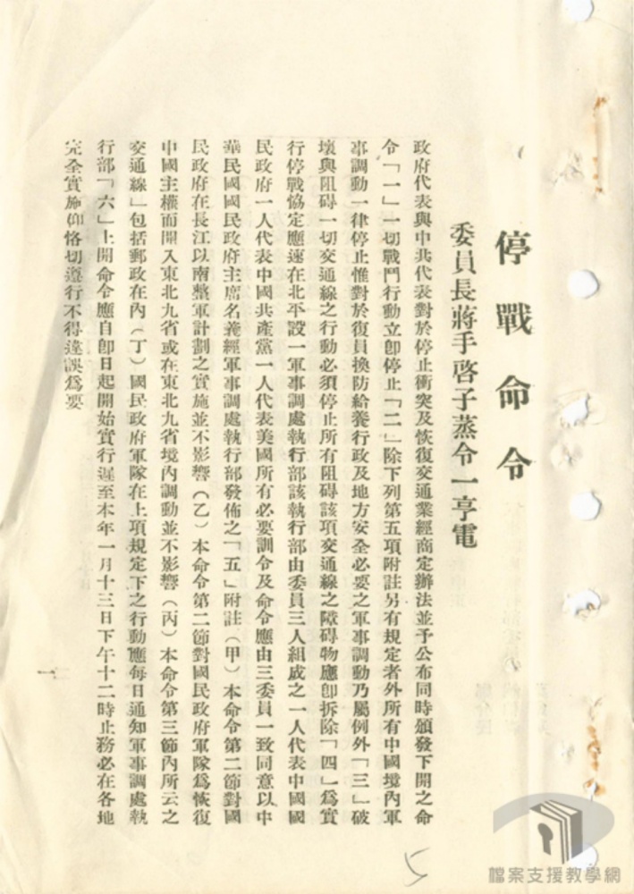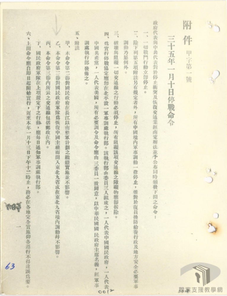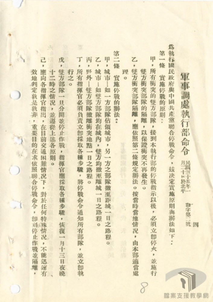 第一期自一月十四日停戰命令額怖至二月甘一日和字第四號命令頒佈止