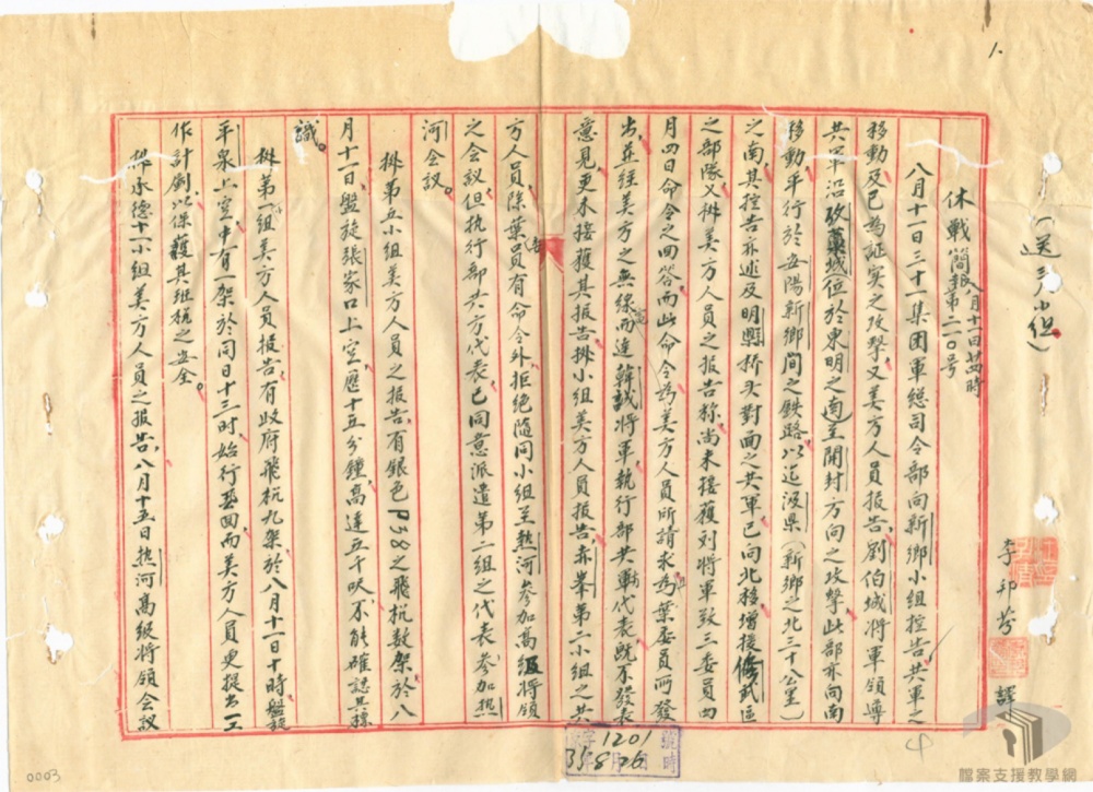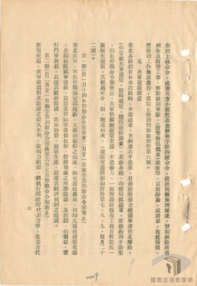 因自停戰命令頒祐後⺀共軍仍賴被懷交通不遺餘力一面對鐵路修復工程百殺阻撓一