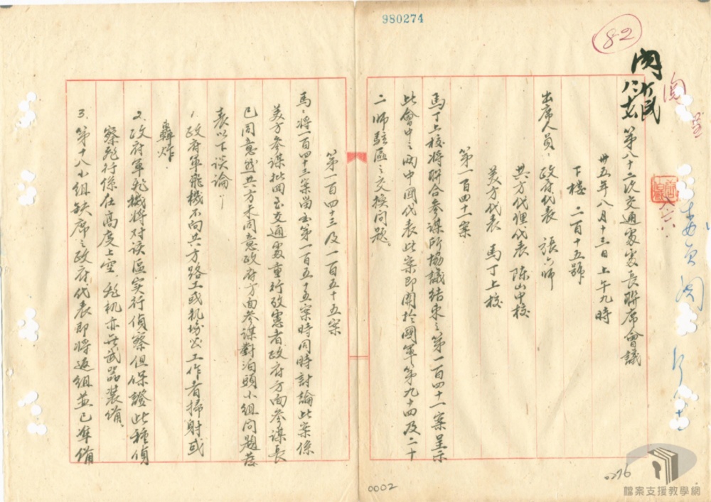 此㑹中之两中國代表然案即圍扵國軍第九十四及二十
