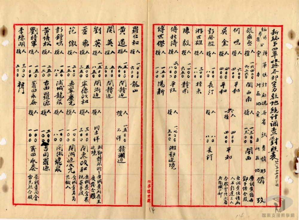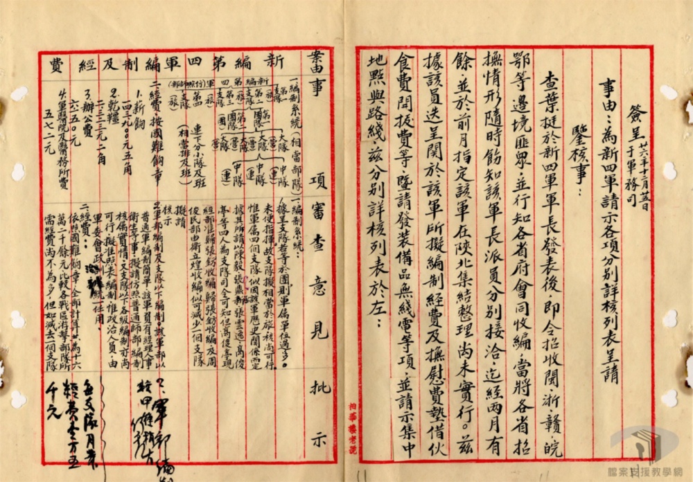 南各地共軍,成立新編第四軍,以葉挺、项英爲正副軍長,共轄四個支隊,其兵額爲一萬餘人,列入
