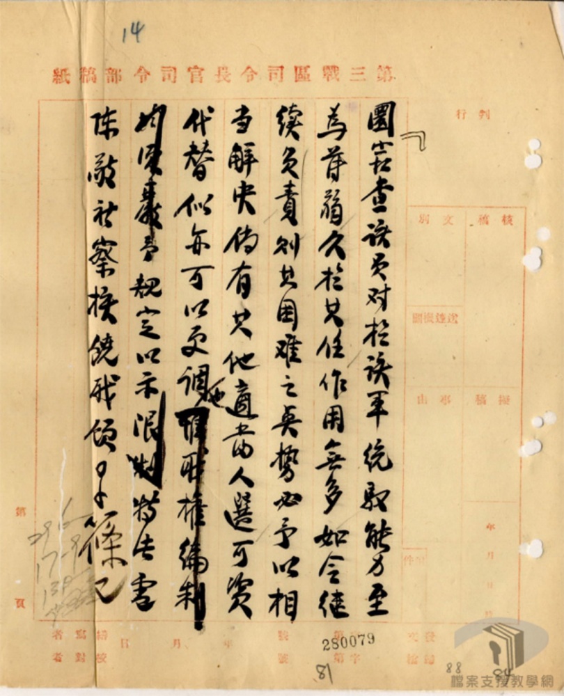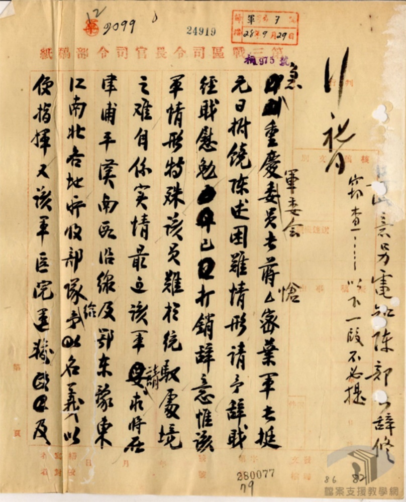 陈⺀余以為泊頭軍隊撒退问題不在本𠁅權限之内而应