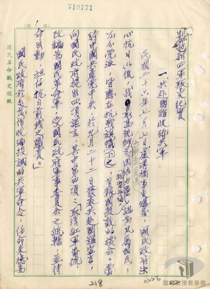 國民革命戰史稿紙