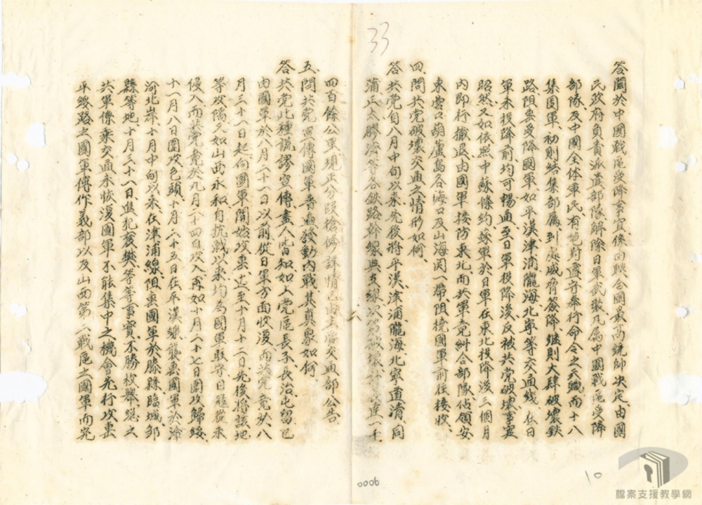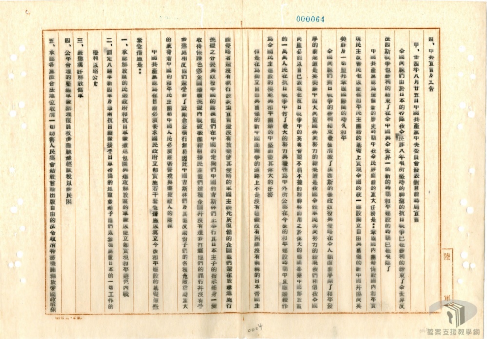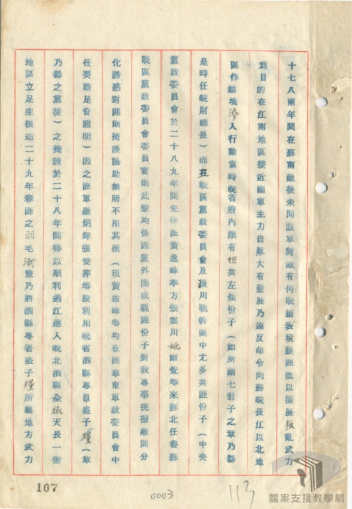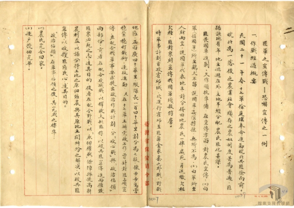 行門爭屠殺⺀以達其政治陰謀⺀阻寒物資⺀破墩生產⺀以達其經濟統制之陰謀〇