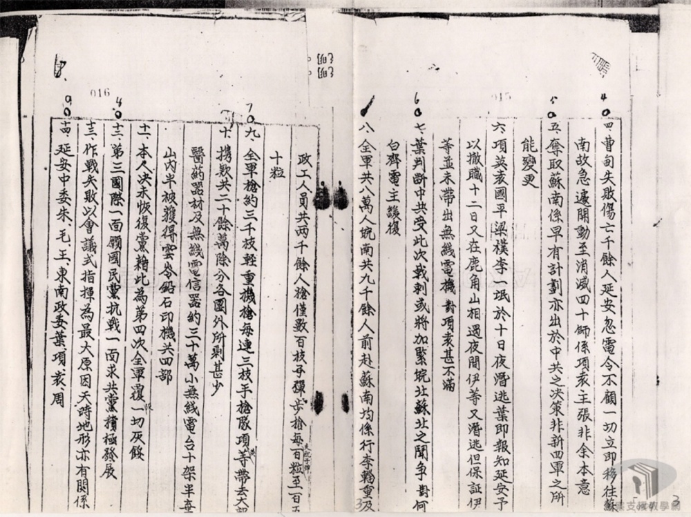 企鬭截斷國車連絡⺀以達其對鹵軍各個包圈⺀待機發波之軍事陰謀及封鎖⺀估韻區⺀實