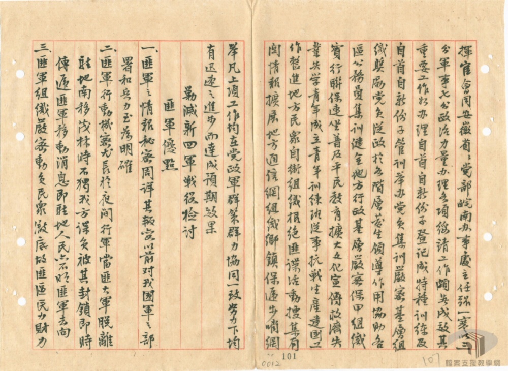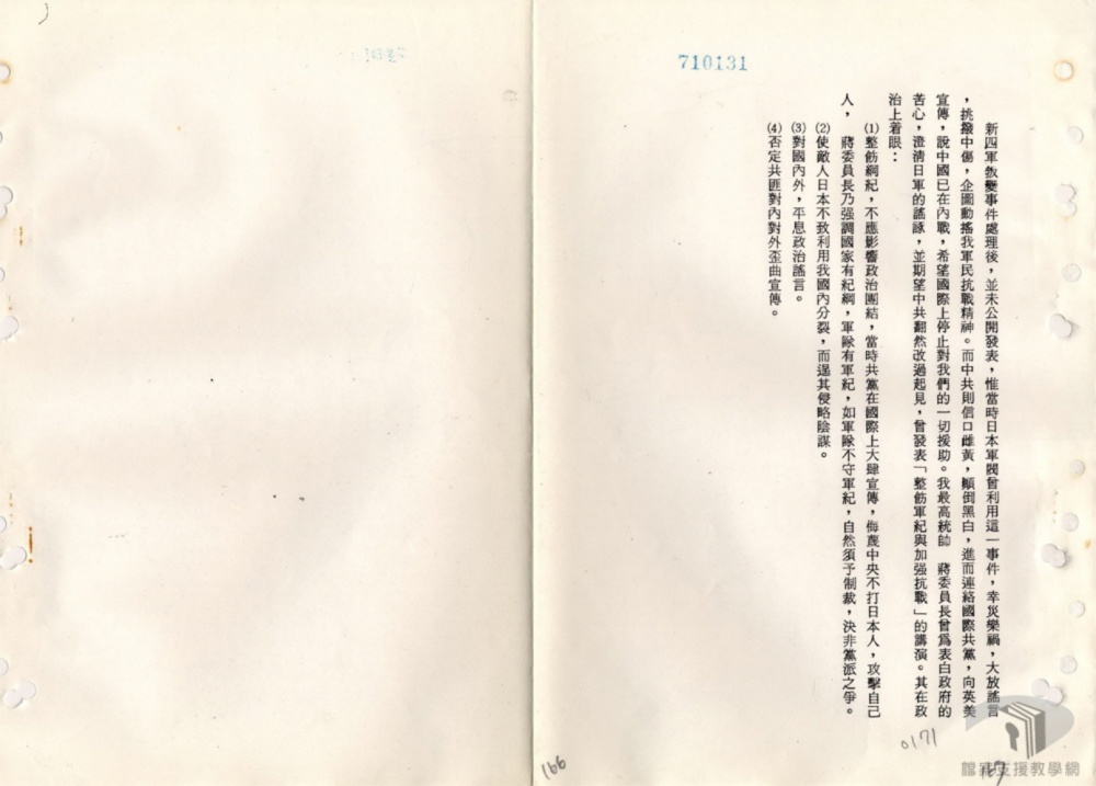民國二十九年十月十九日,何、白兩將軍以皖電將上项提示案正式下達,令第十八集團軍及新四