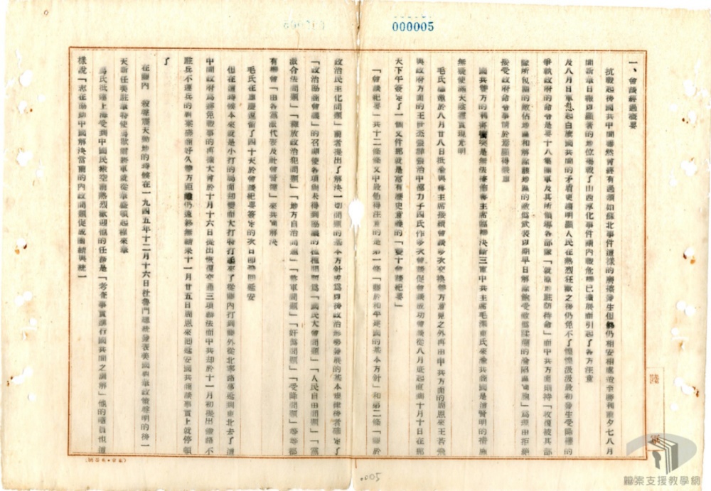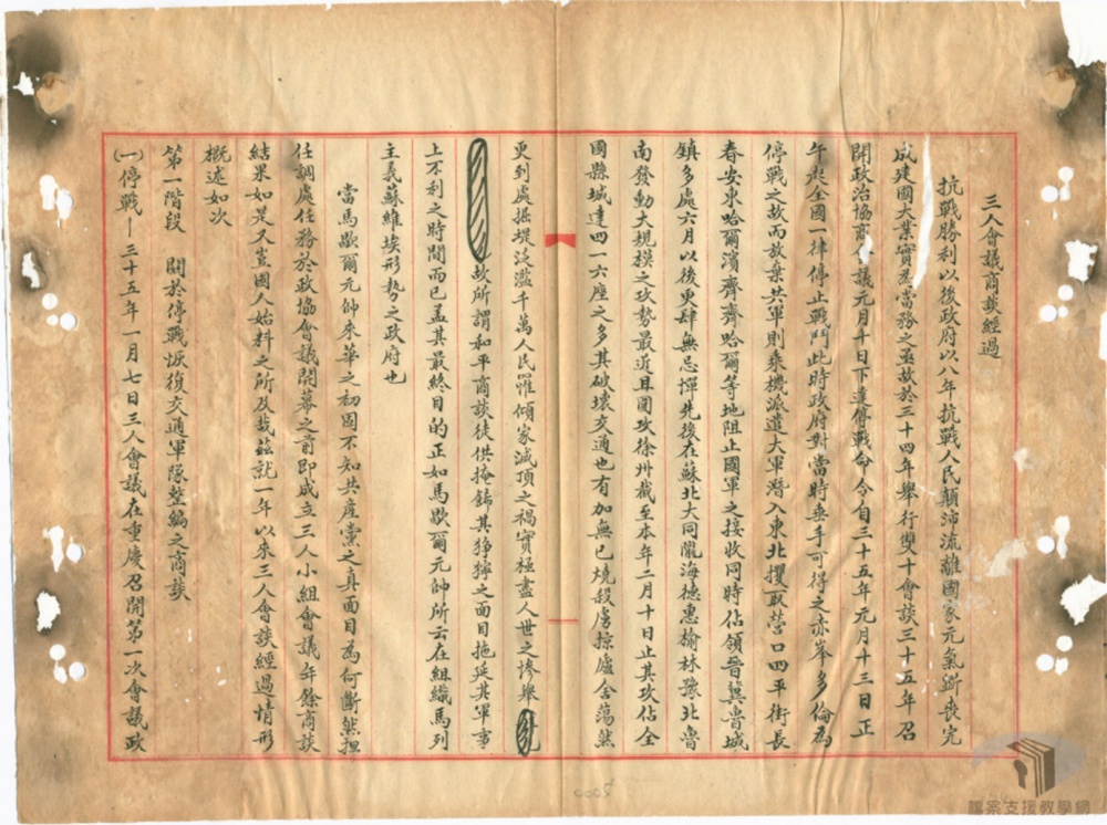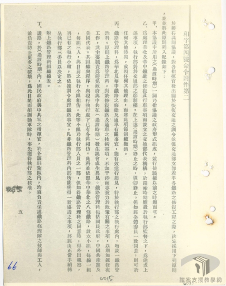 恢復交通⺀共渾視爲對其陰謀之最大不利⺀故竭力聞撓⺀經執行都政府代表力爭⺀及美方代