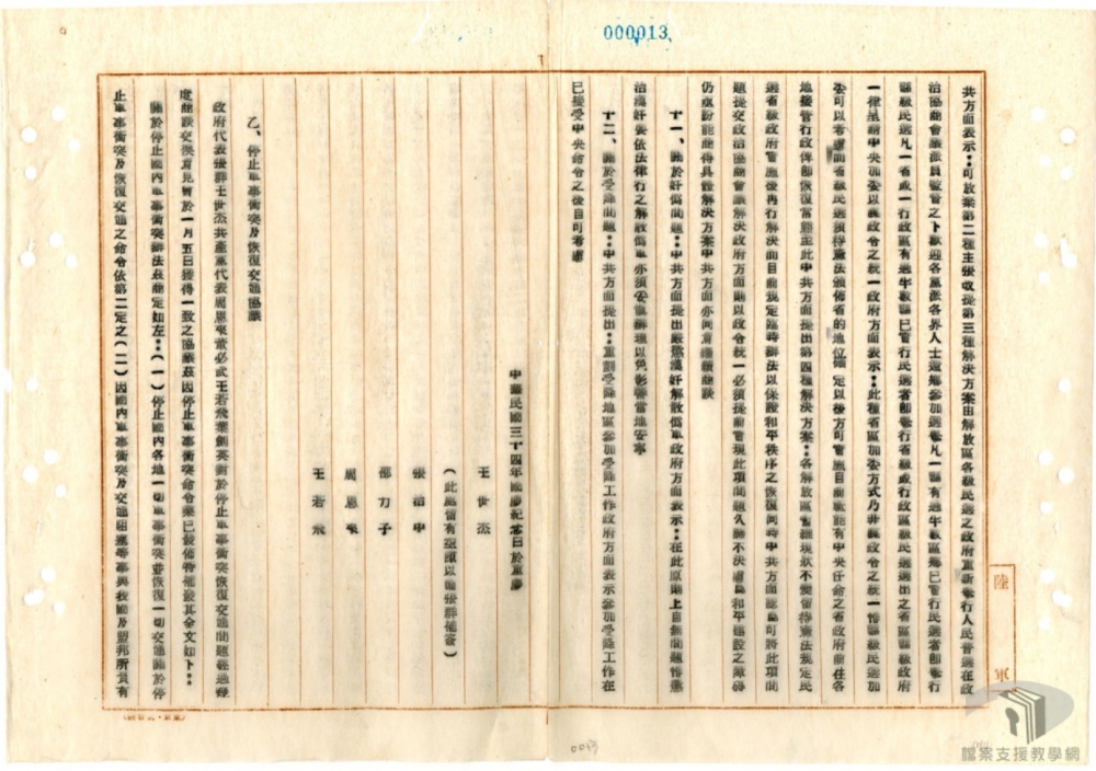 軍番號,改編爲國民革命軍受國民政府軍事委員會之統轄,並待命出動,担任抗日前线之職責。」