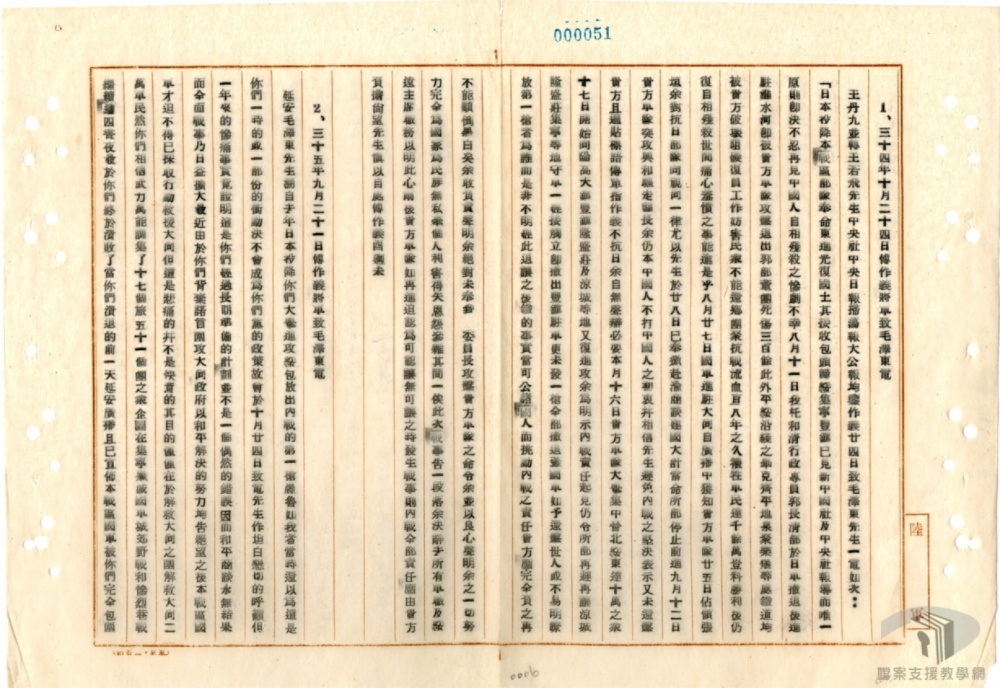 結力量,抵禦外侮,認爲凡屬國民,不分黨派,皆應在抗戰旗幟之下,有報國殺敵的機會。當時中國