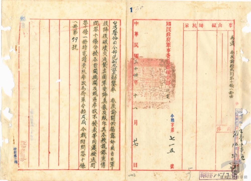 馬但音等規在行勤係粮復非字第張命令之政