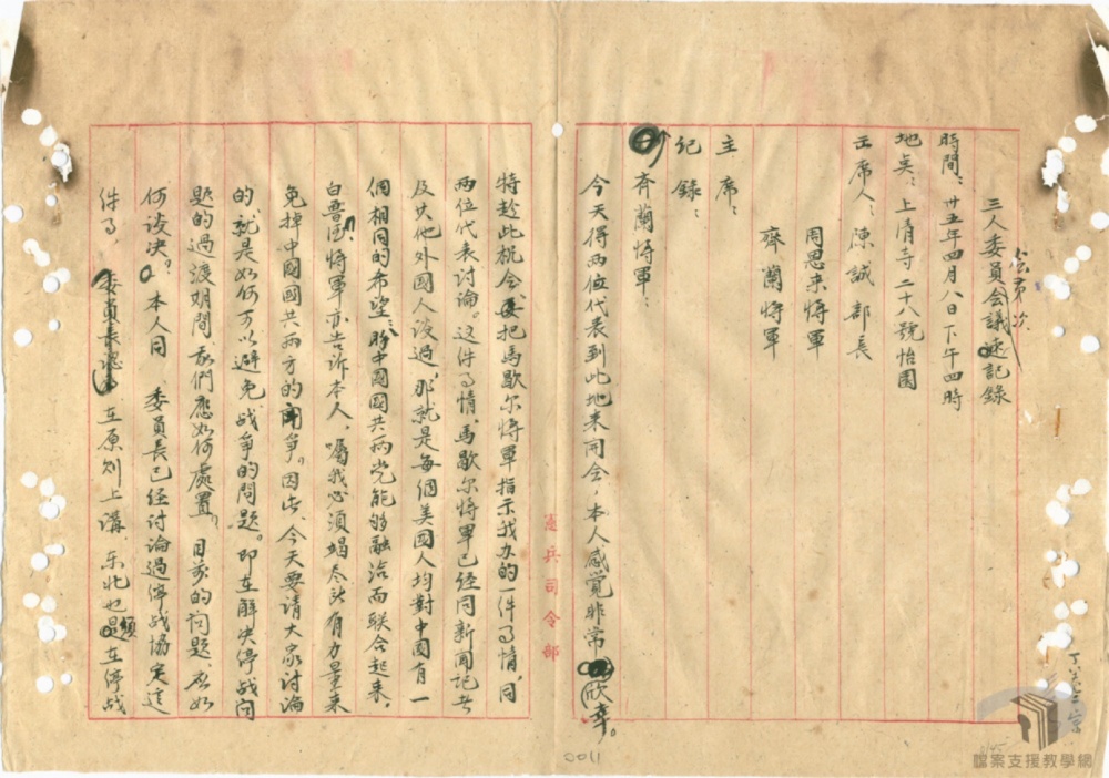 泰到上繳命令⺀或則共方小組代表曲解和字第四號命令⺀提出種無理要求⺀譬如拆餘所有